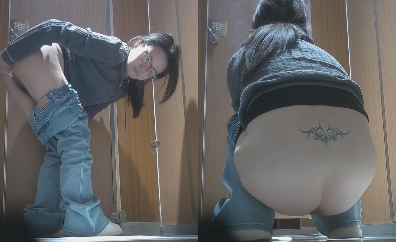 ✅✅✅【美食城女厕】后拍🎬眼睛妹屁股上纹个妓女纹身▶拉完屎站起来擦屁股☛非常适合后插入的姿态 |